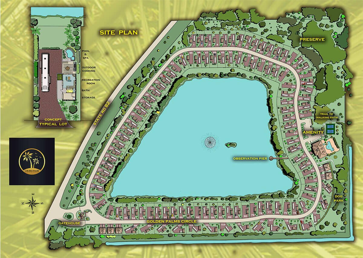 Discover the allure of Golden Palms RV Resort in Florida, where oversized lakefront and lakeview lots provide a canvas for your dream RV living. Each 55' x 110' lot, including the option for an 840 sq ft casita, offers ample space and flexibility to create your ideal retreat within a 54-acre gated community.Golden Palms RV Resort isn't just a location; it's a lifestyle. Immerse yourself in a world of amenities, from a heated saltwater outdoor pool and indoor sauna to pickleball courts and a fitness center. The 22-acre lake and nature preserve offer a tranquil escape, while the clubhouse fosters a vibrant community spirit.Situated in the heart of Southwest Florida, the resort is a gateway to an array of activities. Pristine beaches, fine dining, and unique shopping are just a start. Cultural landmarks like the Edison & Ford Winter Estates, and outdoor adventures in the Everglades, are all within reach. Golden Palms RV Resort combines the serenity of lakeside living with the convenience of modern amenities, making it an ideal destination for those seeking a luxurious and active lifestyle.